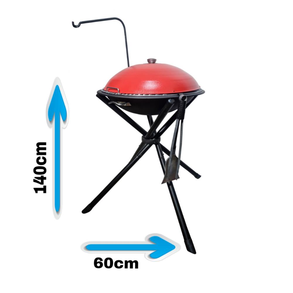 کاور باد بزن پایه نگهدارنده همراه خاک انداز فلزی و انبر فلزی بلند برای ذغال صفحه ی مخصوص پخت و پز درب مخصوص همراه محل خروج هوا دارای آویز برای دیزی، شامورتی و کتری قوری ظرفیت ۱۵ سیخ کباب و جوجه کباب